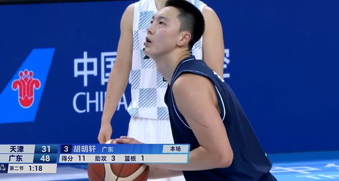 半場戰罷,廣東隊頂住了天津隊的反撲,在次節末段胡明軒的帶領下,回敬天津一波3分鐘15-8,半場取得51-36領先,半場MVP給到胡明軒和王睿澤,小胡半場9中6轟下14分3助攻,王睿澤13分。