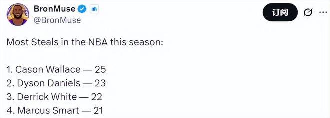 斯馬特的7次搶斷創(chuàng)造了一系列紀(jì)錄。單場(chǎng)7次搶斷是斯馬特湖人生涯最高,他的生涯紀(jì)錄是8次搶斷,同時(shí)也是斯馬特自2017年以來(lái)的單場(chǎng)最高搶斷數(shù)。7次搶斷是本賽季聯(lián)盟單場(chǎng)最高搶斷數(shù)。